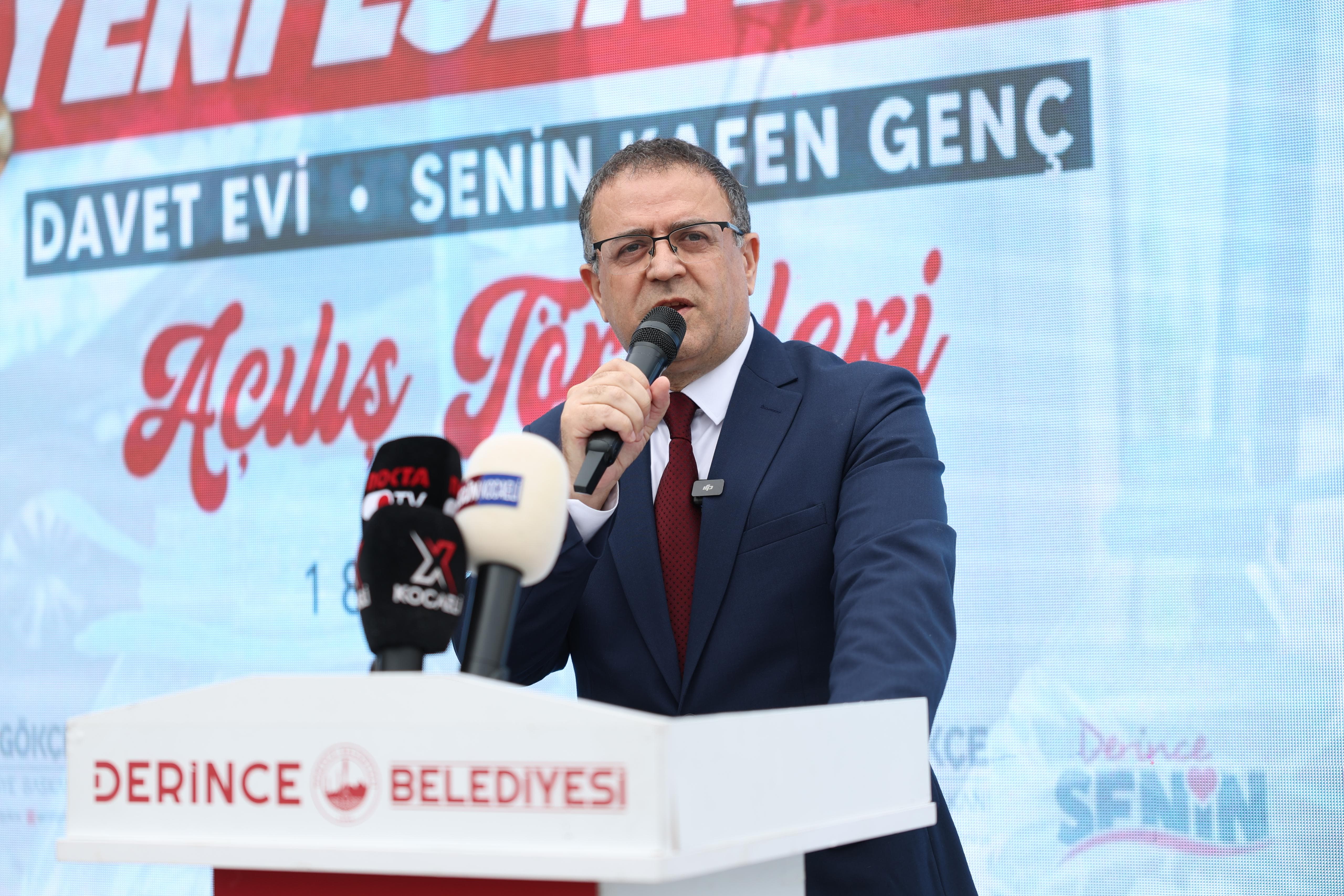 Başkan Gökçe, konuşmasında açılışı yapılan projelere vurgu yaparak "Derince'mize değer katacak çok güzel iki yatırımı daha hep birlikte hizmete açıyoruz. Bugün ilk olarak açılışını gerçekleştirdiğimiz Davet Evi projemizle birlikte, vatandaşlarımızın en özel anlarında yanlarında olmayı hedefliyoruz. Bu projemizle nişandan doğum gününe, toplantılardan özel organizasyonlara kadar pek çok anı daha güzel, daha konforlu ve daha ulaşılabilir hale getiriyoruz. Bugün içinde bulunduğumuz Yenikent Kültür Merkezi; Davet Evi ve kapsamlı bir revizyonla büyüttüğümüz salonlarıyla artık ilçemizde sosyal yaşamın ve kültürün önemli buluşma noktalarından biri haline geldi. Ayrıca bu merkezimizde yer alan salonumuzun oturma düzenini yenileyerek kapasiteyi 320 kişiden 528'e çıkardık. Bu düzenlemelerimizle Kültür Merkezimizi, halkımızın daha fazla faydalanabileceği canlı bir yaşam alanına dönüştürdük" dedi.
